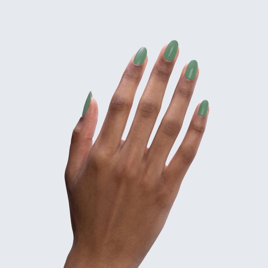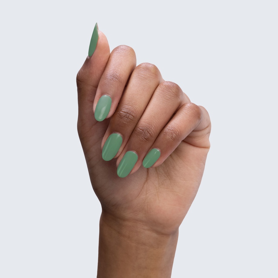 Mint green. Muted. Medium. Opaque. Warm undertone.